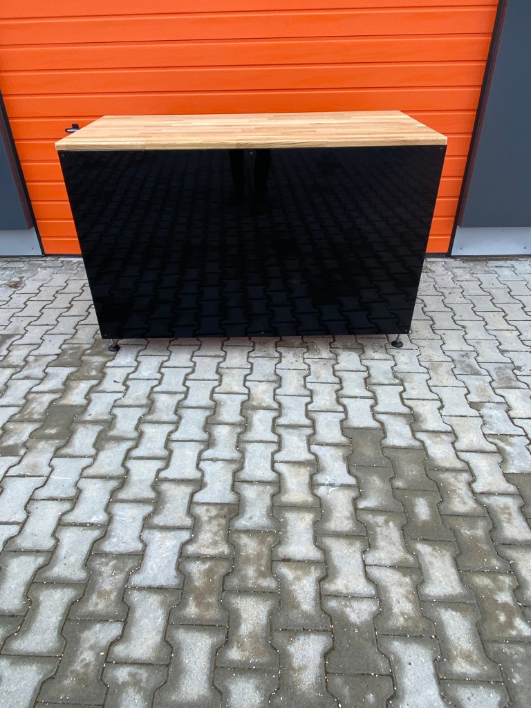 Handliche Theke mit Eichenarbeitsplatte sowie individuell beschreibbaren Fronten. 2 Dieser White-Board-Bars sind vorhanden, um damit ggf. eine Insel zu erzeugen oder die Thekenbreite zu verdoppeln. Ideal um Getränke oder Speisen anzurichten.