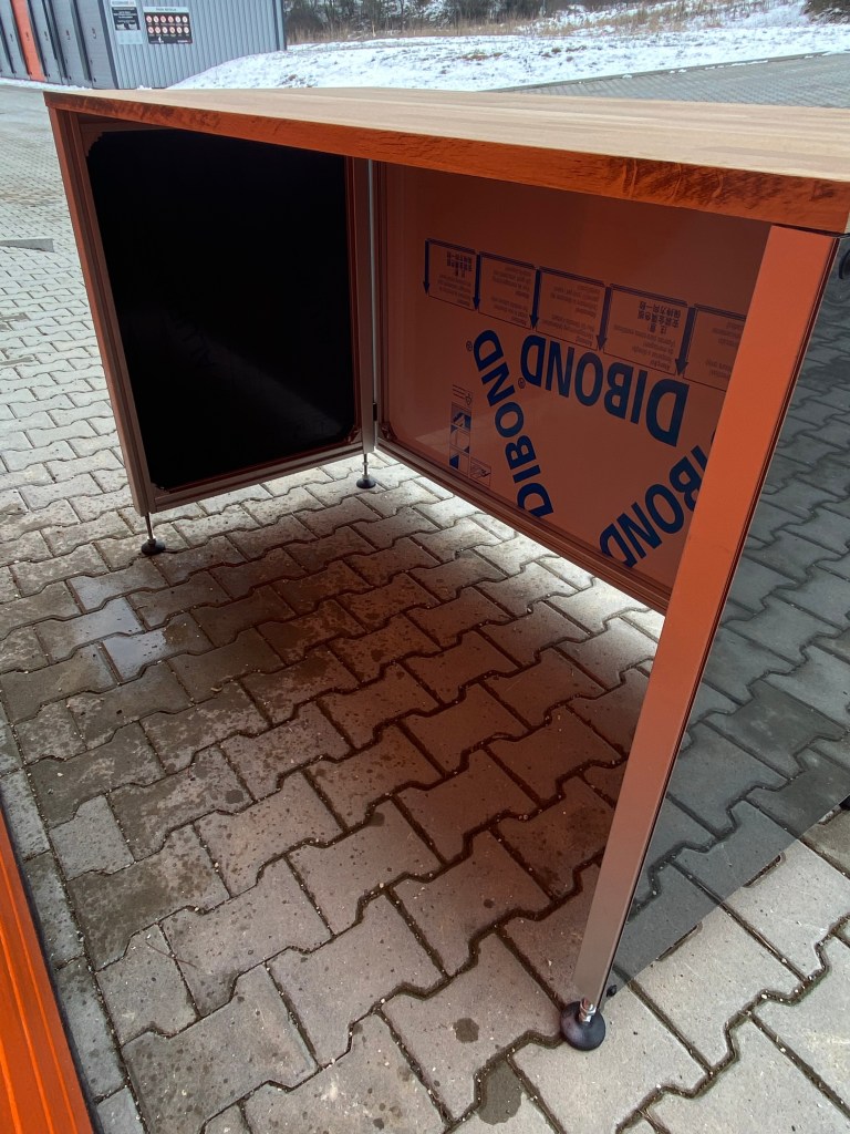 - Auf Rollen, dadurch sehr schnelles umstellen der Sektwand möglich