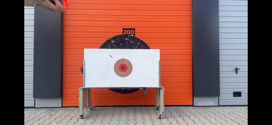 Glücksrad mit einem sehr großen Drehdurchmesser von 1,2m! Wem das nicht reicht, der kann rückseitig den NERF Zielscheiben-Einsatz dazubuchen.