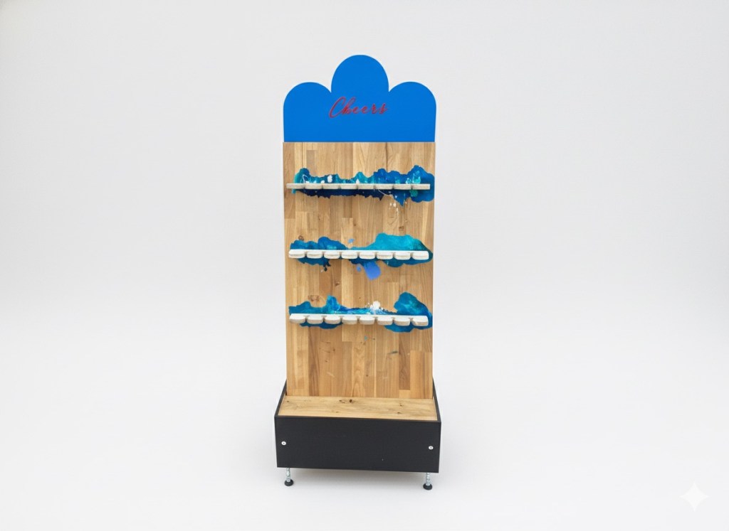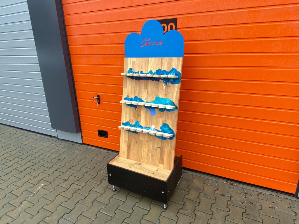 - Ablage unten für weitere Getränke, Gläser, Deko, …