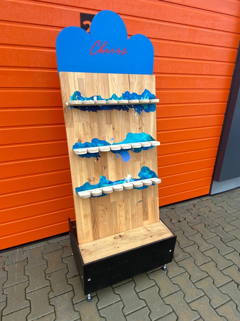 Sektwand bzw. Champagnerwand mit einmaligen Design. Platzsparend gehalten nach dem Credo: Lieber 3x nachfüllen statt einer gigantisch großen Sektwand, die immer unordentlich aussieht.